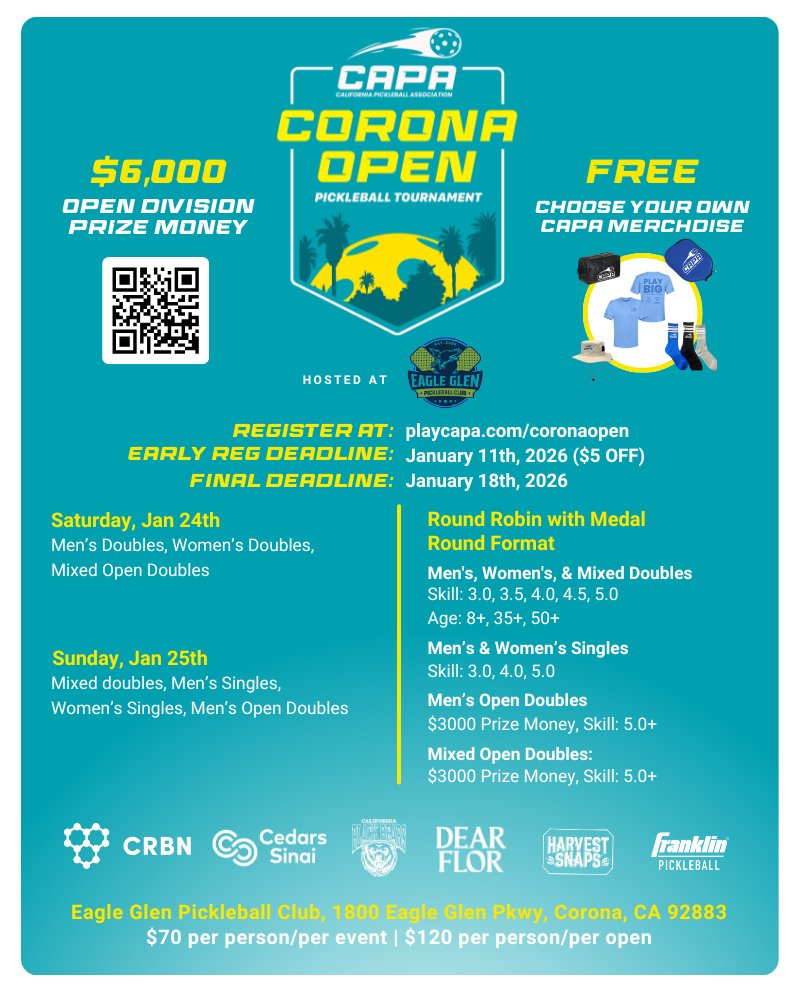 Email capickleballassociation@gmail.com for any tournament inquiries.